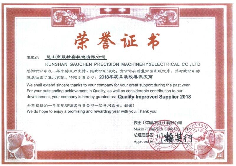 獲得牧田品質(zhì)改善供應(yīng)商獎(jiǎng)項(xiàng)
